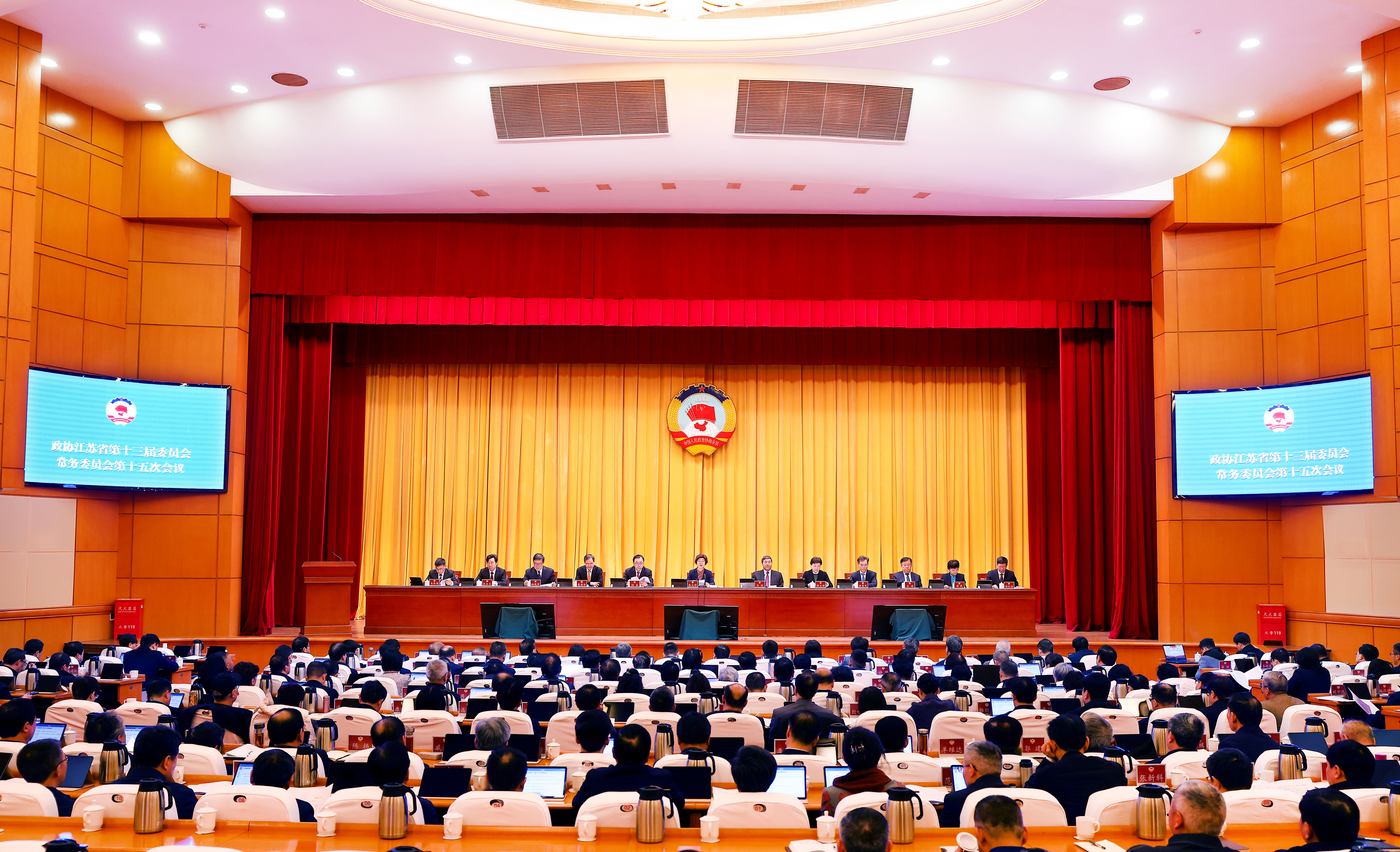 邢卫红代表民革省委会、冯泉代表民盟省委会、潘镇代表民建省委会、史立军代表省政协经济委、王秦代表省政协科技委、葛道凯代表省政协教卫体委分别作大会发言。会议分5个小组进行学习讨论。委员们表示,中共二十届四中全会是乘势而上、接续推进中国式现代化建设的又一次总动员、总部署,必将有力引领和推动基本实现社会主义现代化取得决定性进展。省委十四届十次全会围绕总书记赋予江苏的战略定位和使命任务,精准谋划目标任务和政策举措,彰显了走在前、做示范、挑大梁、作贡献的责任担当。刚刚召开的省委经济工作会议,深入学习贯彻总书记重要讲话和中央经济工作会议精神,对推动我省实现“十五五”良好开局具有重要意义。一定认真学习贯彻,更好聚焦中心任务建言资政、增进共识,以实际行动助力我省经济社会高质量发展。