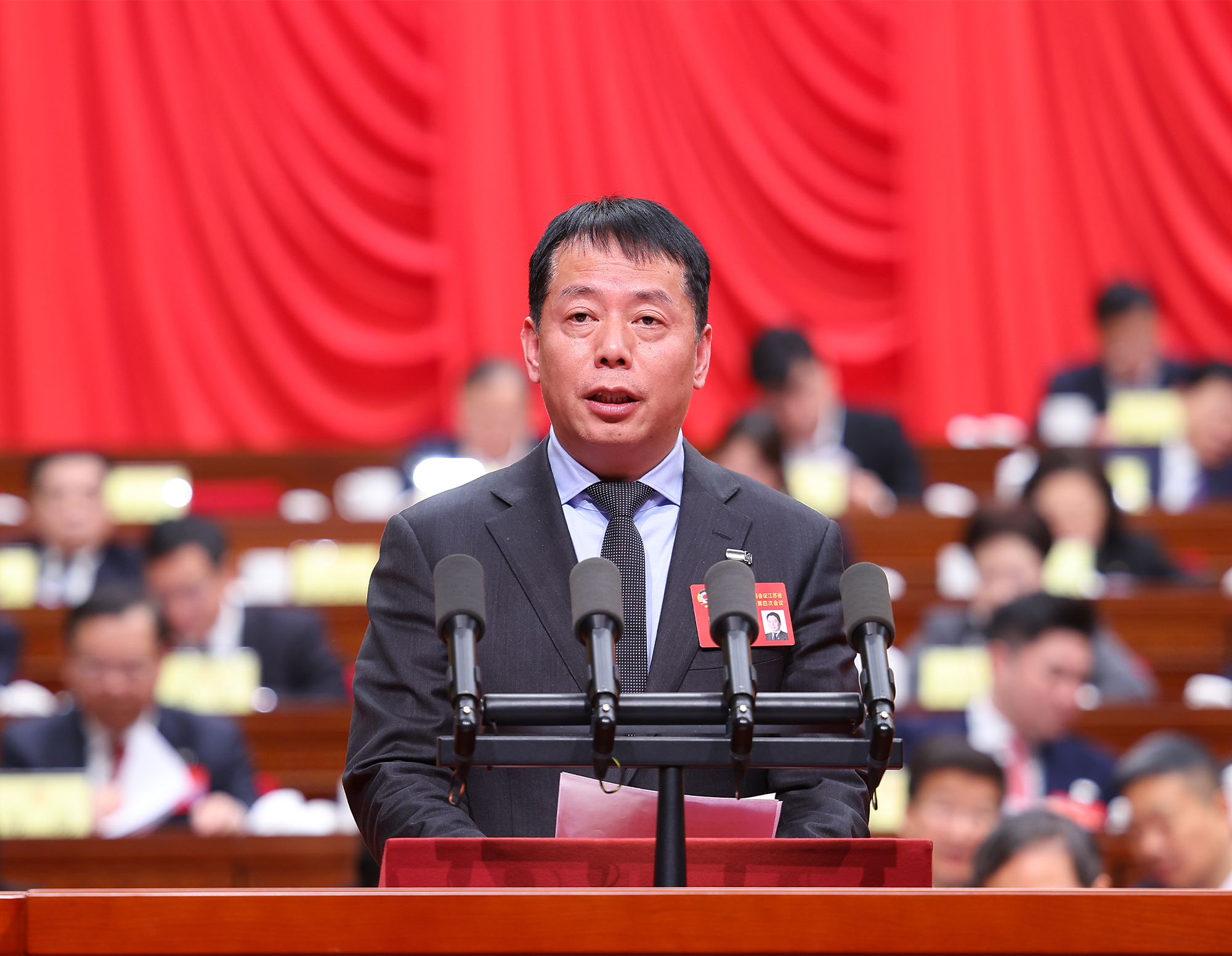 三、弘扬企业家精神,建设更多世界一流企业。当前,民营经济发展机遇与挑战并存,但机遇大于挑战,需要民营企业家保持定力、精心运筹,克难奋进、加倍努力,勇担时代重任。进一步弘扬好企业家精神,引导广大民营企业家自觉把思想和行动统一到中共中央对形势的科学判断上来,把握发展大势,坚定发展信心,正确面对当前生产经营中的阶段性困难挑战,以制度创新赋能企业发展,进一步释放活力、增强韧性,合理优化企业投资布局,积极发展新质生产力,推动建设更多世界一流企业,为实现“十五五”良好开局、推进中国式现代化江苏新实践作出更多贡献。