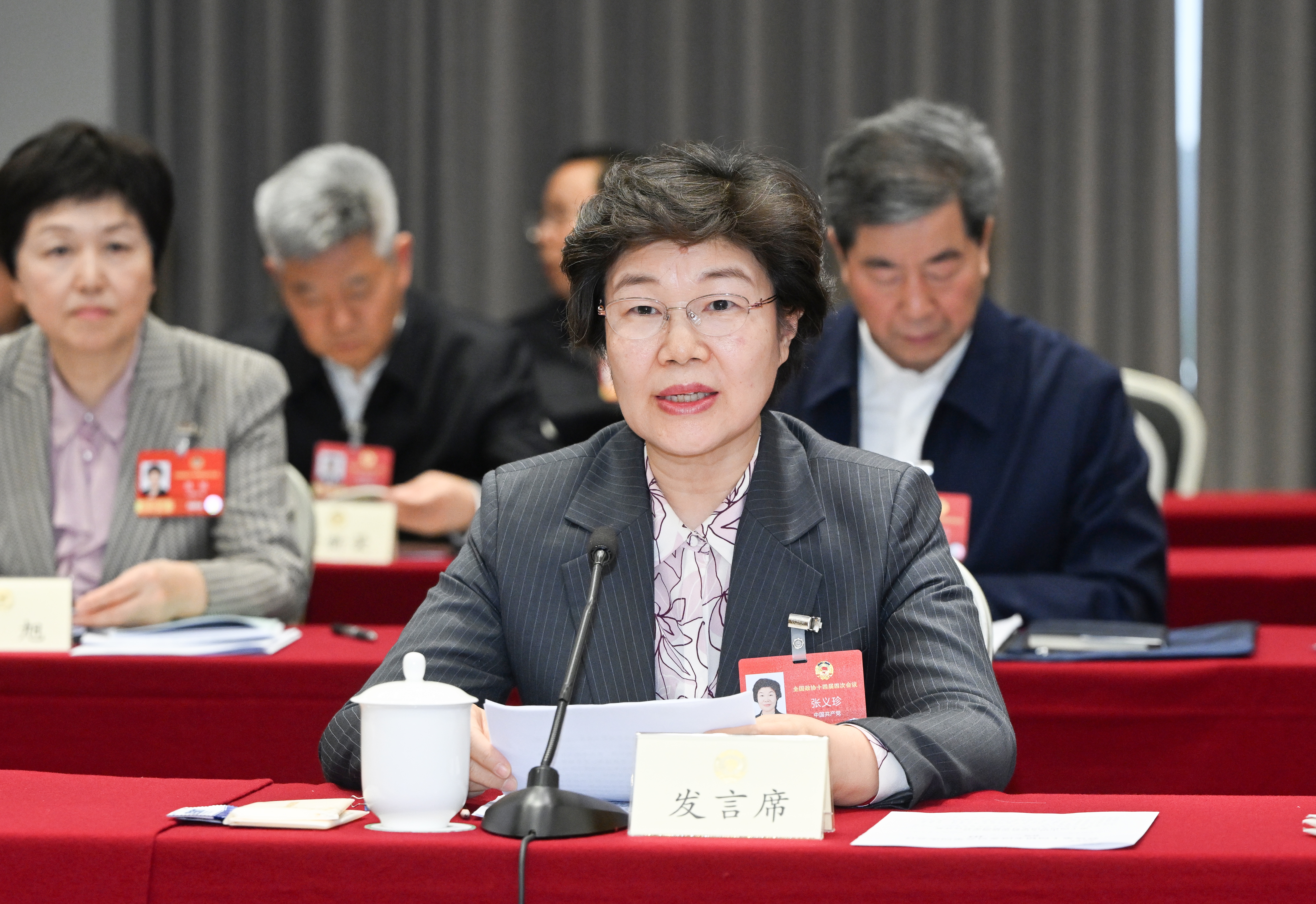 3月5日,全国政协委员、省政协主席张义珍在参加全国政协十四届四次会议中共界小组审议全国政协常委会工作报告和提案工作情况报告时发言,表示要突出深入学习贯彻习近平总书记对江苏工作重要讲话精神这条主线,认真传达学习习近平总书记重要讲话精神和全国两会精神,落实王沪宁主席在江苏调研时的讲话要求,在全国政协指导和江苏省委领导下,树立和践行正确政绩观,求真务实、真抓实干,推动五年工作系统研究预安排、年度工作重点谋划深落实,积极助力“十五五”良好开局。