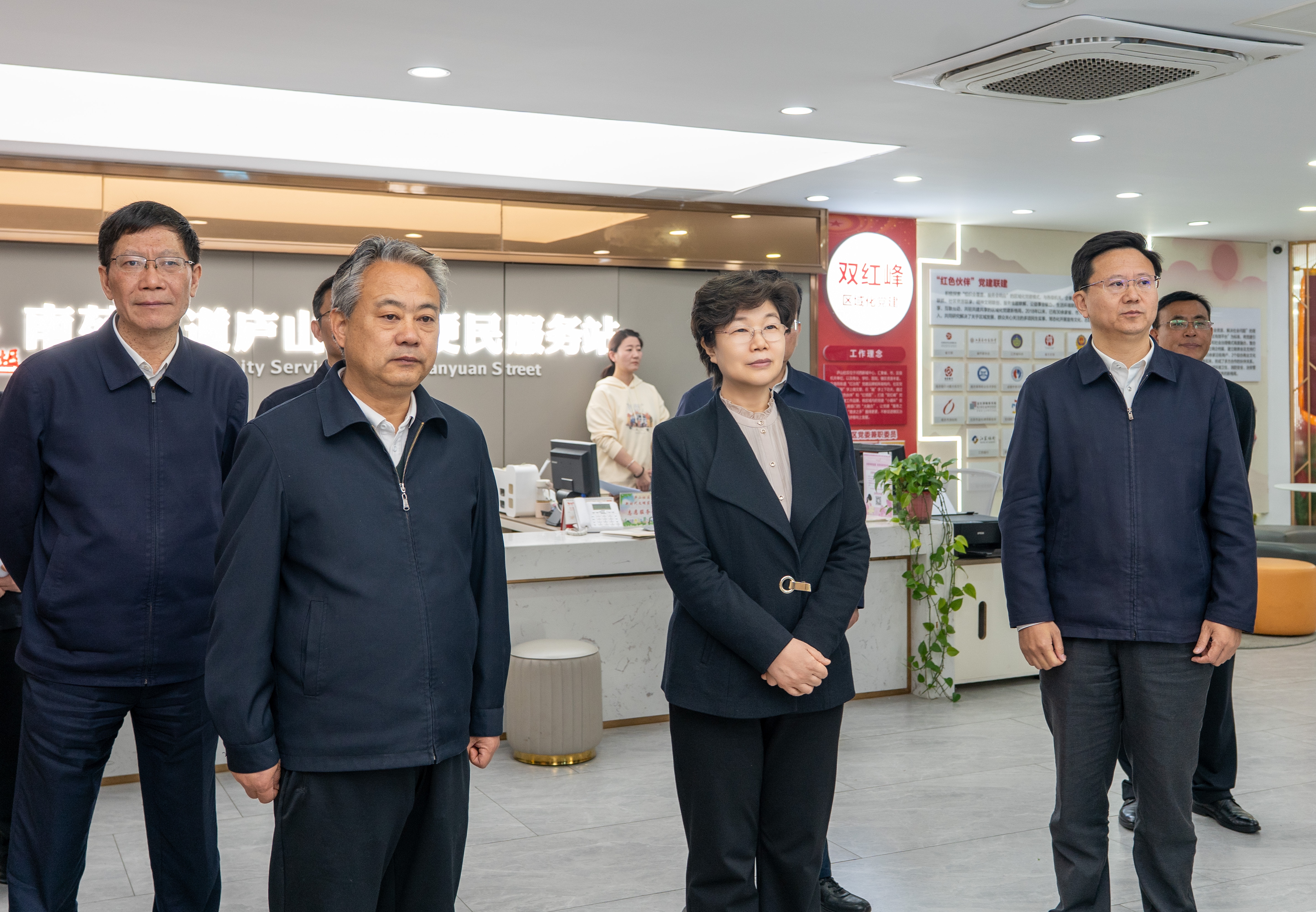 在南苑街道庐山社区、双闸街道新亭社区党群服务中心,张义珍了解服务集成供给以及社区数字化赋能基层公共服务的做法和成效,现场察看党员教育、文体活动、居家康养、亲子阅读、基层协商等功能区域,并与工作人员和社区居民询问交谈,听取进一步提升基本公共服务水平的意见建议,对社区加强党建引领,以目标导向、问题导向和需求导向不断优化服务供给,构建完善共建共治共享的基层治理格局表示赞许。她表示,建邺区为群众提供家门口的优质服务和精细管理,更好惠及民生、促进和谐的相关做法成效,值得认真总结和借鉴。