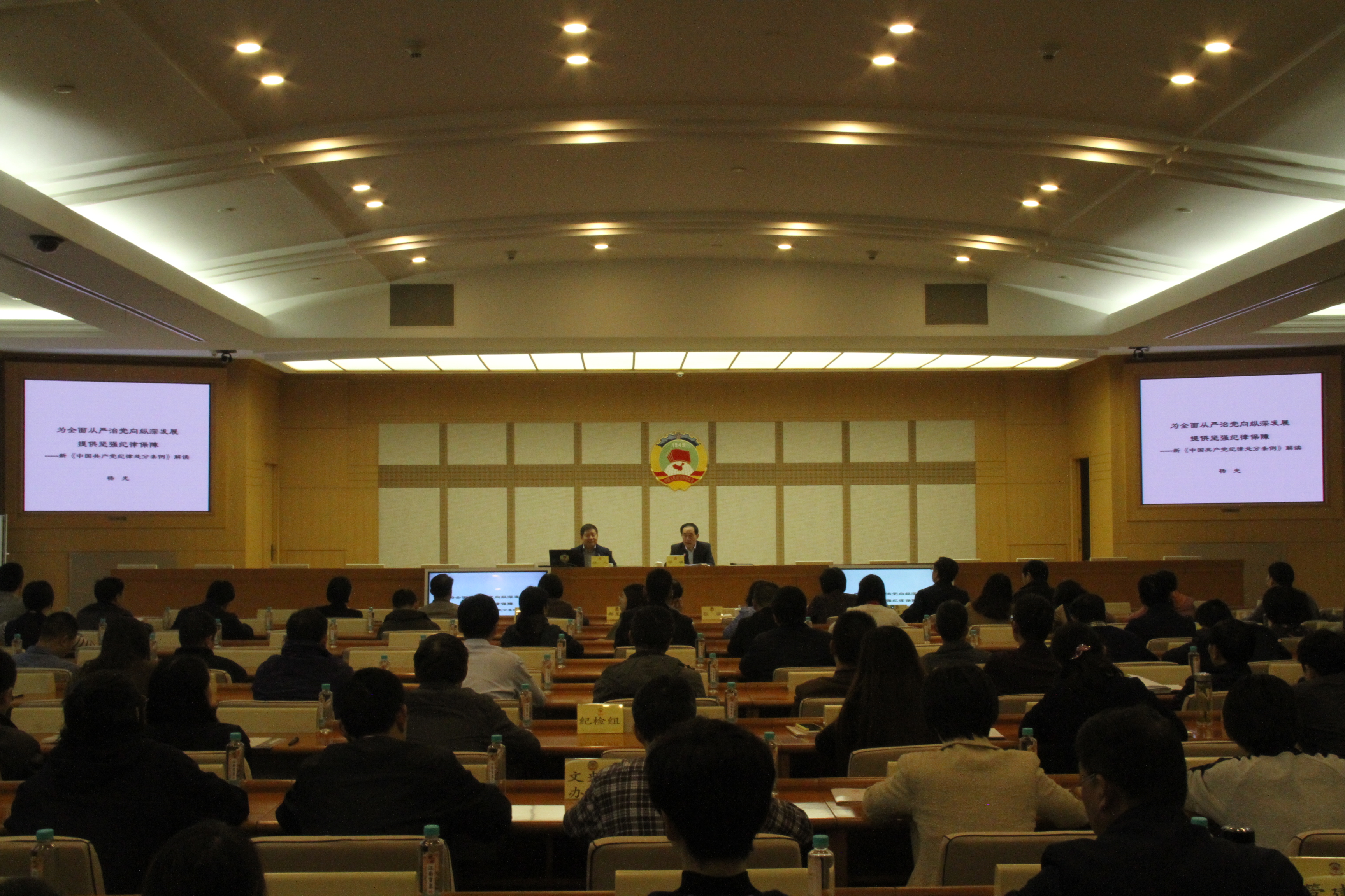 讲座中,杨光主任以“为全面从严治党向纵深发展提供坚强纪律保障——《中国共产党纪律处分条例》解读”为题,结合工作实际,从提高政治站位、坚持问题导向、全面从严执纪三个方面,深刻阐述了《条例》修订的重要意义,深入解读了《条例》新修订的主要内容,并结合多个案例剖析,帮助大家加深对条例的理解,对于深入学习领会《条例》具有很强的现实指导性和警示教育性。