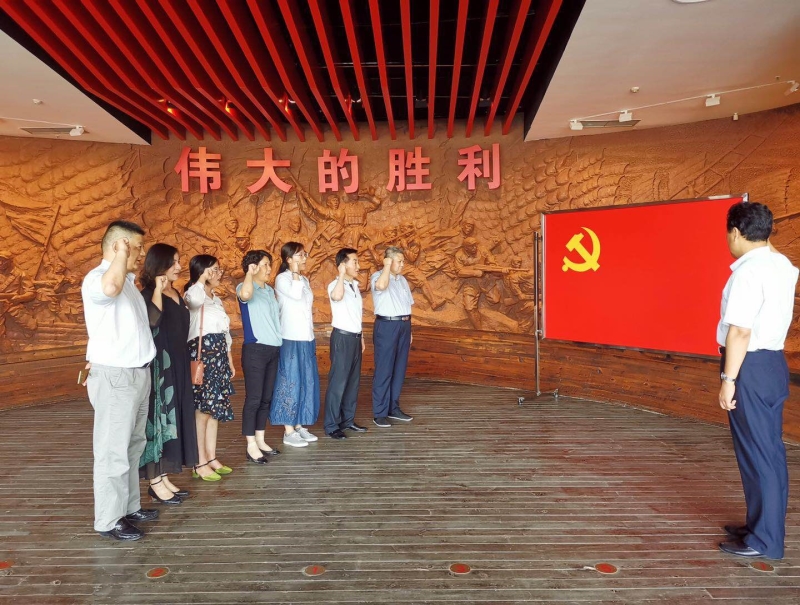 在渡江胜利纪念馆序厅,支部党员面对鲜红的党旗,举起右手庄严宣誓,表达为共产主义奋斗终身的坚定决心。随后,在纪念馆讲解员的引导介绍下,大家参观了渡江战役和解放军事迹展,受到了深刻的革命英雄主义和党的历史教育。