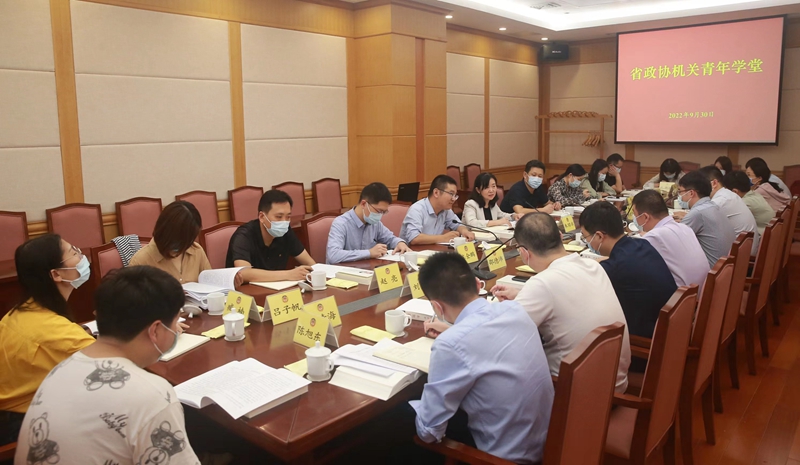 在全国上下喜迎党的二十大、欢庆中华人民共和国成立73周年之际,9月30日,省政协机关举行2022年第三期“青年学堂”,深入学习《习近平谈治国理政》第四卷、习近平总书记在省部级主要领导干部专题研讨班上的重要讲话精神和习近平总书记《论党的青年工作》,推动广大团员青年更加深刻领悟“两个确立”的决定性意义,进一步增强“四个意识”、坚定“四个自信”、做到“两个维护”。