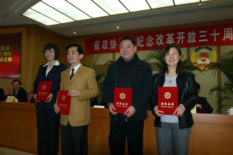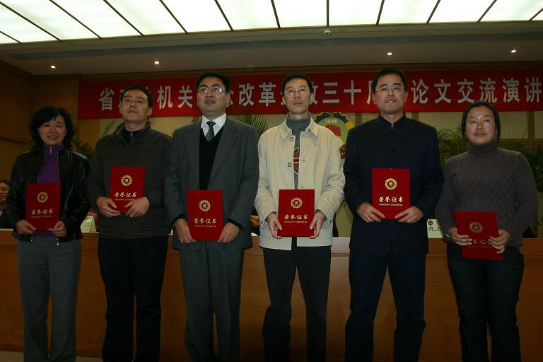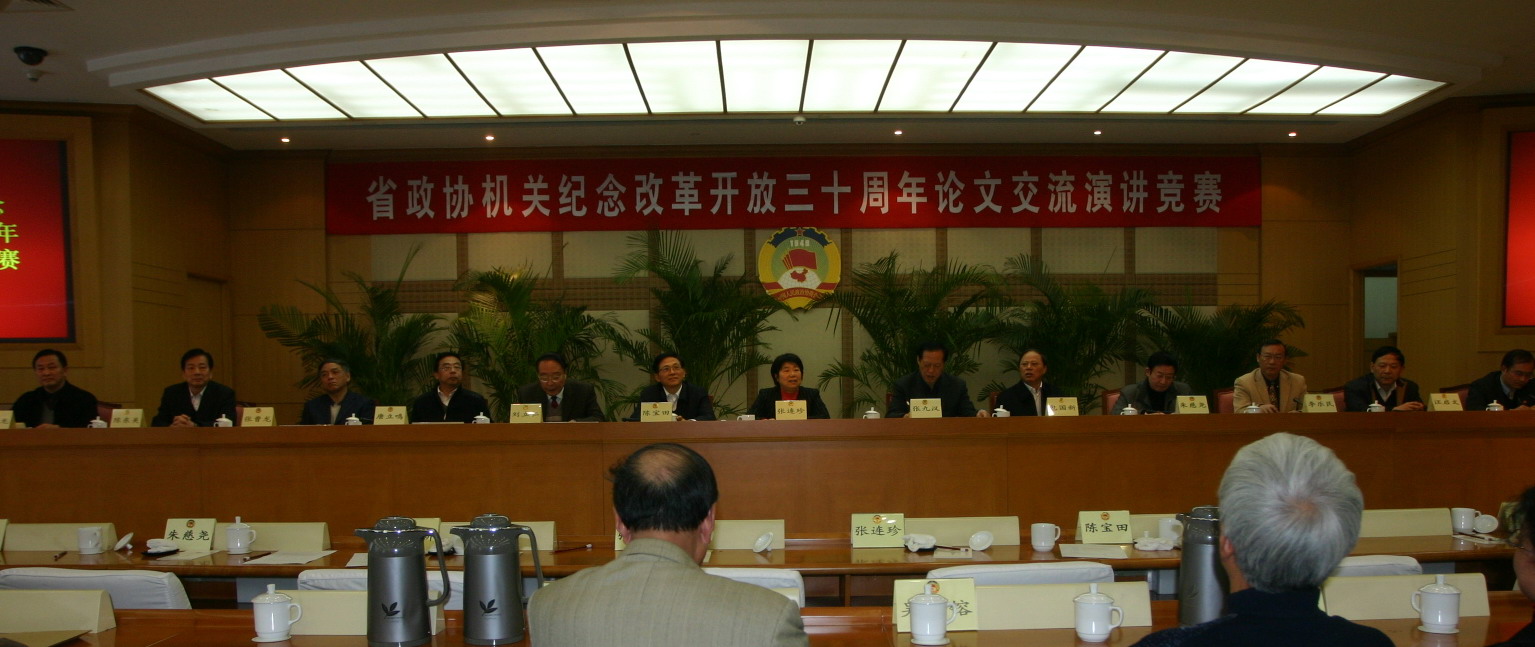 为隆重纪念改革开放30周年,省政协机关举行了论文征集活动,活动得到了政协机关干部职工的热烈响应,共收到论文40 多篇。论文交流演讲竞赛上,省政协原秘书长吴镕和12位机关干部职工结合自己的切身体会,他们演讲的论文“创新:改革开放30年人民政协事业蓬勃发展的不竭动力”、“一名‘70后’眼中的改革开放30年”、“从民谣看家乡公路30年变化”等,从不同侧面回顾了我省改革开放30年来的辉煌巨变,重温了我省政协事业蓬勃发展的光辉历程,探讨了继续解放思想、坚持改革开放的基本思路。演讲振奋人心,令人鼓舞。