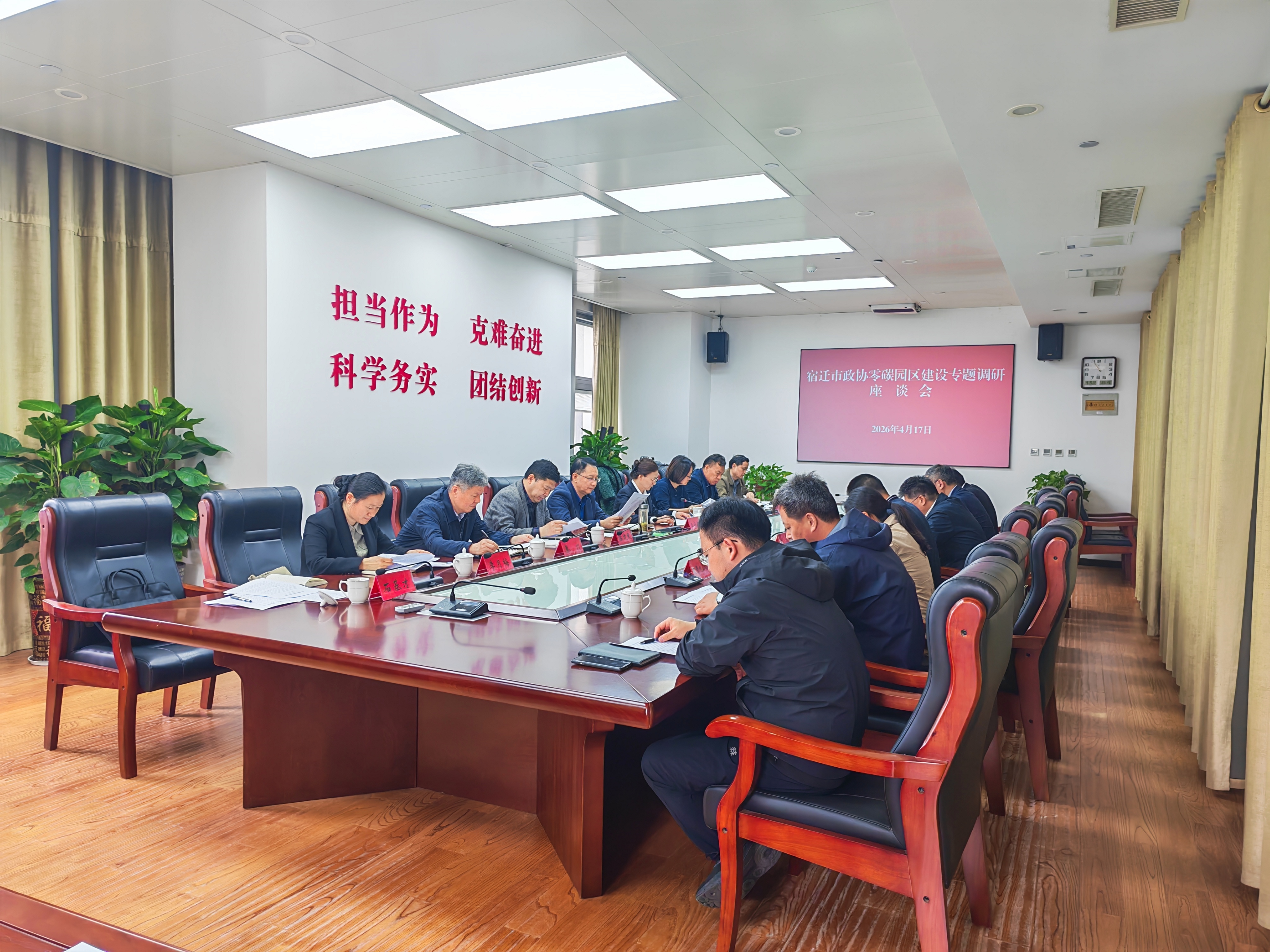 调研组实地考察了运河宿迁港配售电有限公司、“风光储充”一体化智慧零碳微电网、江苏新瑞邦纤维科技有限公司等工作现场,深入了解园区绿色能源开发、低碳技术应用、零碳场景打造等情况,并与市有关部门、运河宿迁港产业园及部分企业负责人座谈交流,听取意见建议。