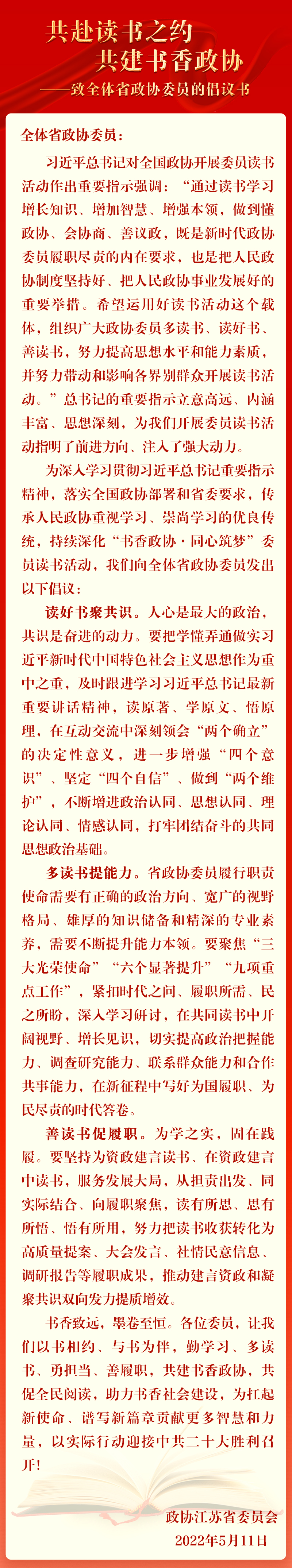 当前位置:首页 / 委员履职 / 委员读书 / 倡议书
