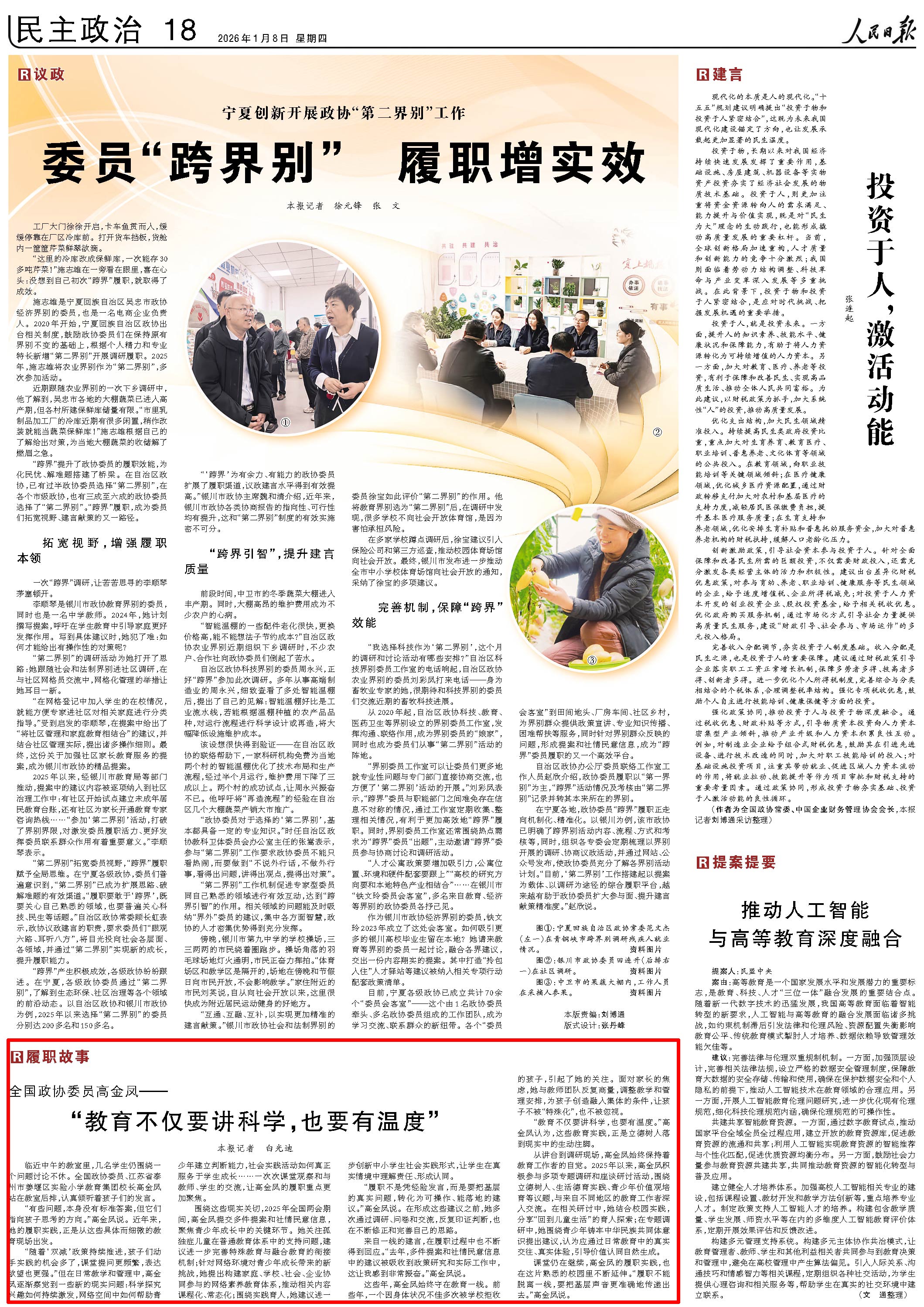 “有些问题,本身没有标准答案,但它们指向孩子思考的方向。”高金凤说。近年来,她的履职实践,正是从这些具体而细微的教育现场出发。