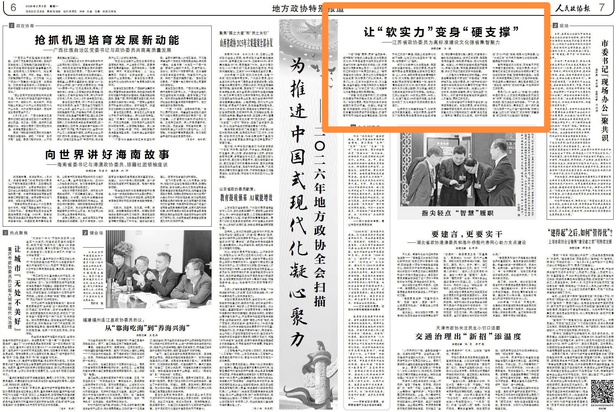 委员们认为,当前,从“苏超”的火爆到非遗的活化,从文旅的深度融合到网络文学“苏军”的崛起,江苏文化建设已呈现多点突破、活力迸发的良好态势。下一步,关键在于系统谋划、精准发力,进一步打通“文化资源—产业价值—经济动能”的转化通道,让文化的“软实力”成为推动“强富美高”新江苏现代化建设的“硬支撑”。